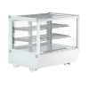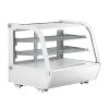 شو کیک امپرو 70 سانتی با نورپردازی LED سفید و امکان تنظیم زاویه و ارتفاع طبقات قابل ارائه است. این دستگاه دارای شیشه دوجداره جهت کاهش اتلاف انرژی می باشد. محدوده دمایی قابل تنظیم مابین 0 تا 12 درجه سانتیگراد می باشد.