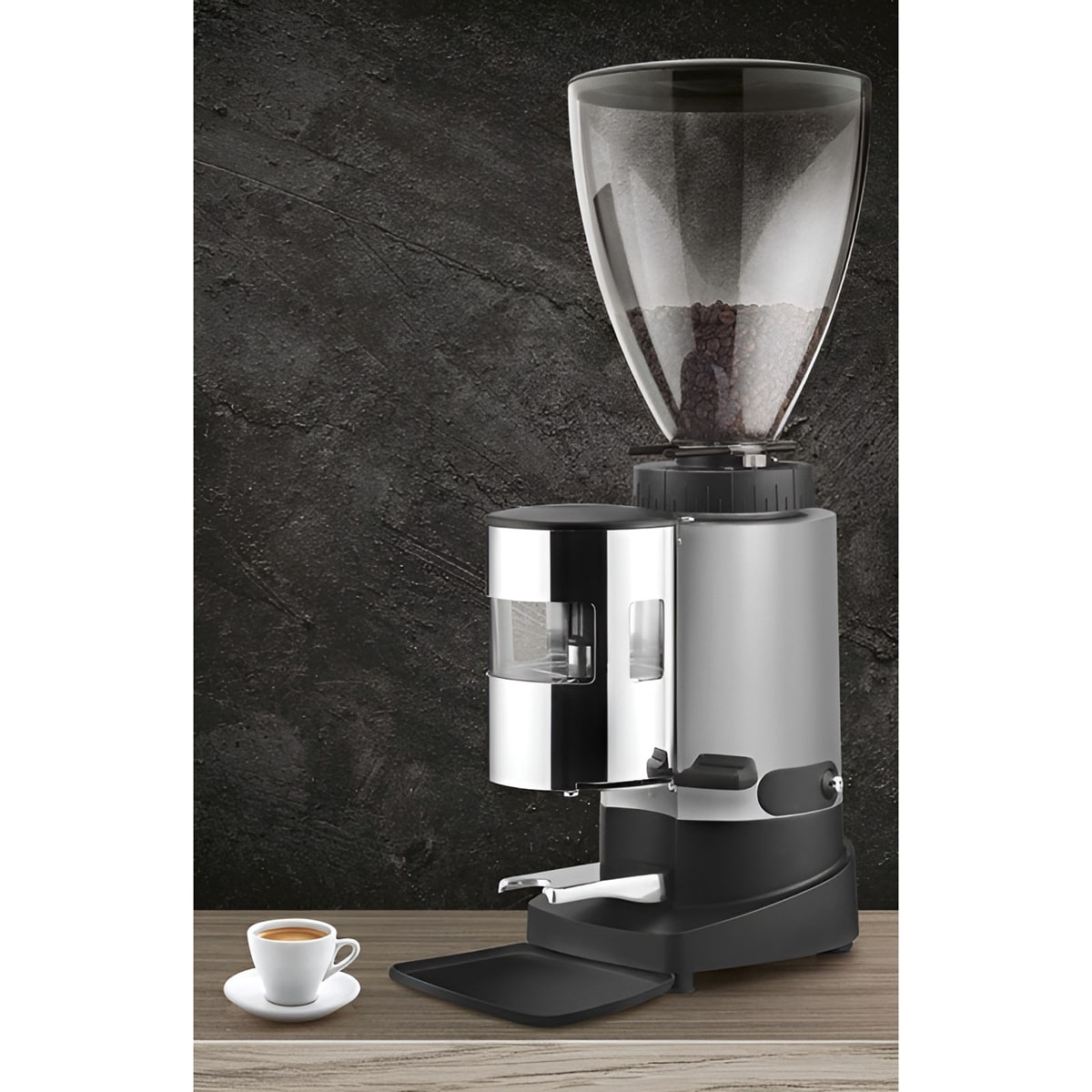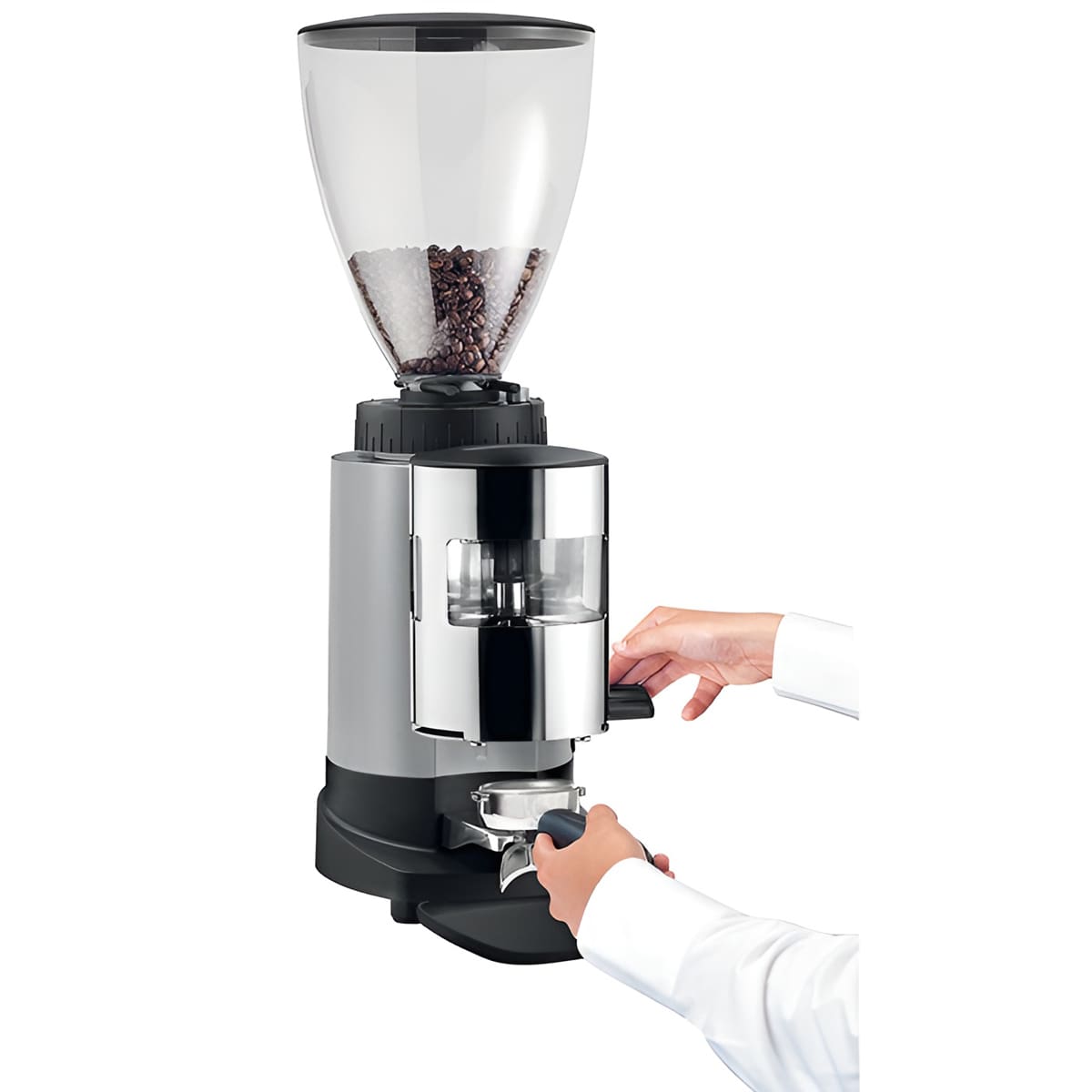 این مدل ترکیبی از سیستم آسیاب در لحظه (On-Demand) و مخزن دوزردار را ارائه میدهد؛ یعنی پس از آسیاب، پودر قهوه مستقیماً وارد محفظه دوز میشود و همیشه ۲۰۰ تا ۳۰۰ گرم پودر تازه و آماده در اختیار باریستا قرار میگیرد. این موضوع سرعت سرویس دهی را در تایم های شلوغ چند برابر میکند.